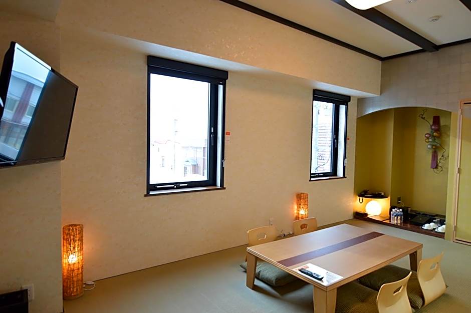 The family room includes a private bathroom, well-fitted with a bath, a shower, a bidet, a hairdryer and slippers. The family room offers air conditioning, tatami, soundproof walls, a tea and coffee maker and a flat-screen TV. The unit has 2 beds and 2 futons.